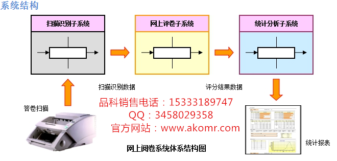 品科智能評卷軟件由掃描識別子系統、統計分析子系統及高速掃描儀組成。根據應用需求的不同,統計分析子系統的功能也不盡相同。如將功能不同的統計分析子系統與掃描識別子系統及高速掃描儀配套使用,即可形成一系列獨立應用于不同領域的系統。